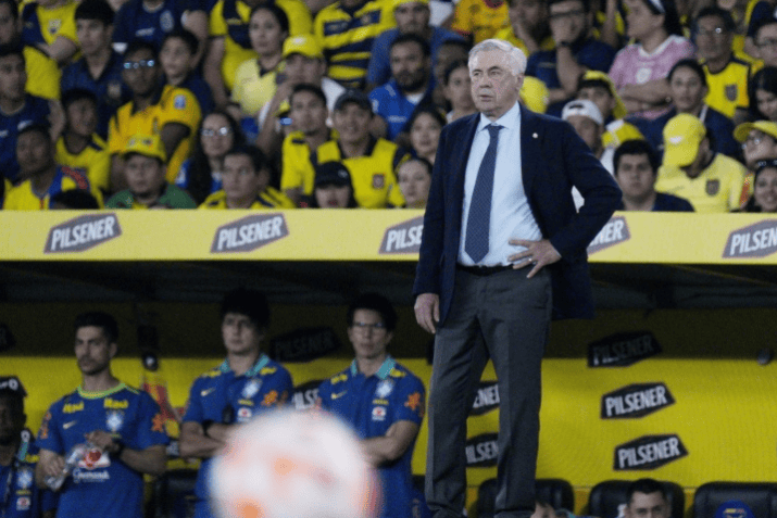 被巴西球迷寄予厚望的安切洛蒂,此役摆出了4231的阵型,阿利森首发镇守龙门,道格拉斯桑托斯、加布里埃尔、马尔基尼奥斯和韦斯利构筑后防,卡塞米罗和吉马良斯搭档双后腰,马丁内利、拉菲尼亚和埃斯特旺坐镇中场,单箭头则是切尔西锋霸若昂佩德罗。